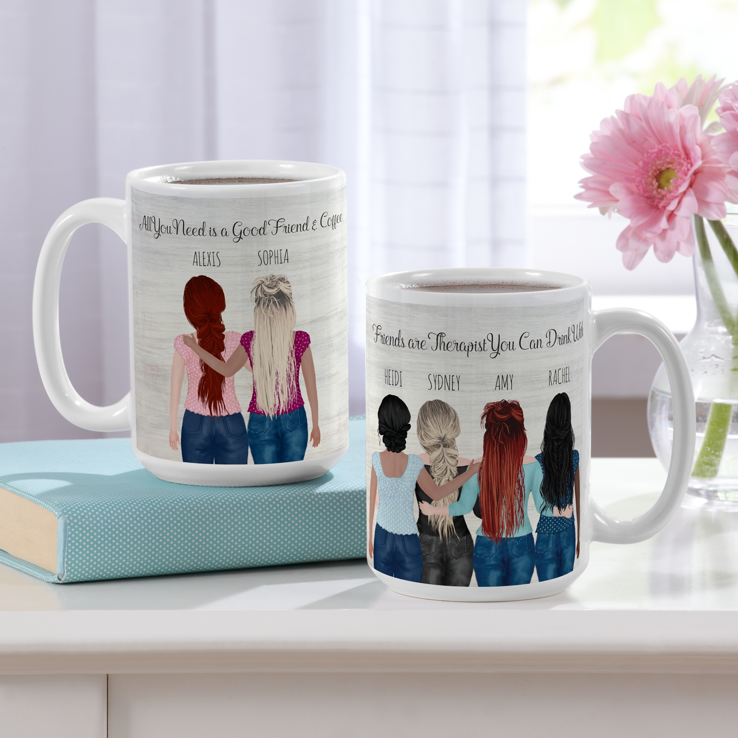Our diverse selection has something for everyone. Personalized mugs with photographs. BFF holding coffe mugs personalized gift.